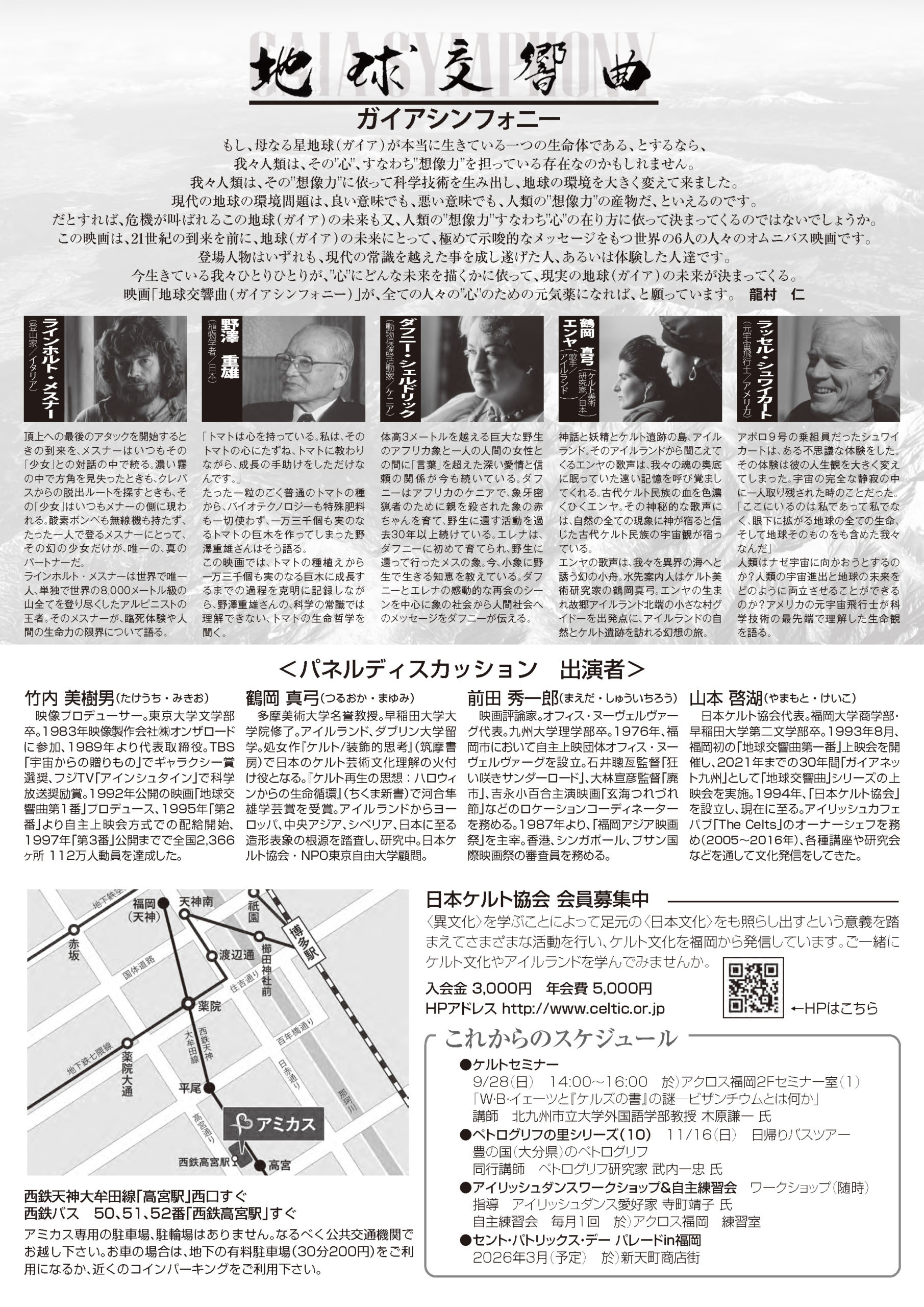 • 「地球交響曲 第一番」上映会とパネルディスカッション ~製作秘話と映画に見るケルト文化とアイルランド~