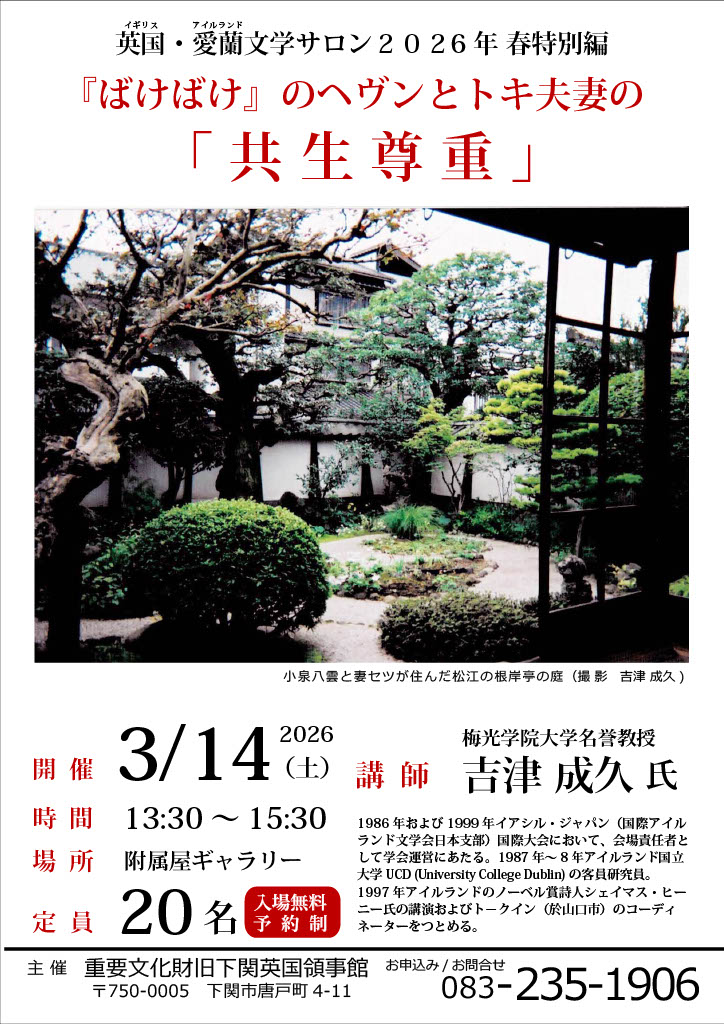 英国・愛蘭文学サロン2026年 春特別編『ばけばけ』のヘヴンとトキ夫妻の「共生尊重」